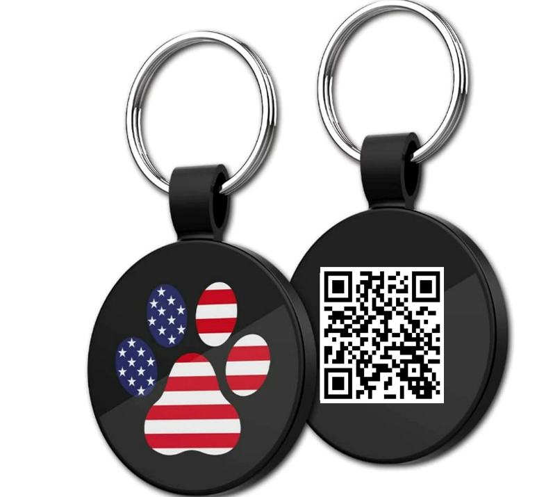 We've launched pet tags with QR codes for your pet's protection. Your QR code can be customized with information like your contact information and address. And all the information is accessible by scanning this QR code. Additionally, if someone scans your QR code tag with location URL, you'll receive an email